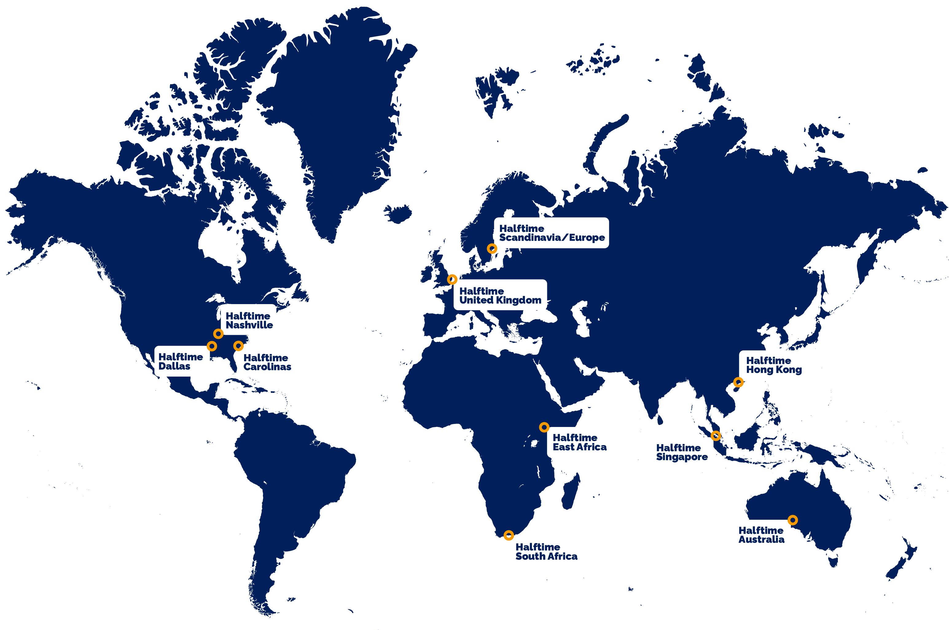 Locally grown and led Halftime hubs across five continents equip high-capacity leaders everywhere to discover and live out the joyful, impactful lives they were made for.